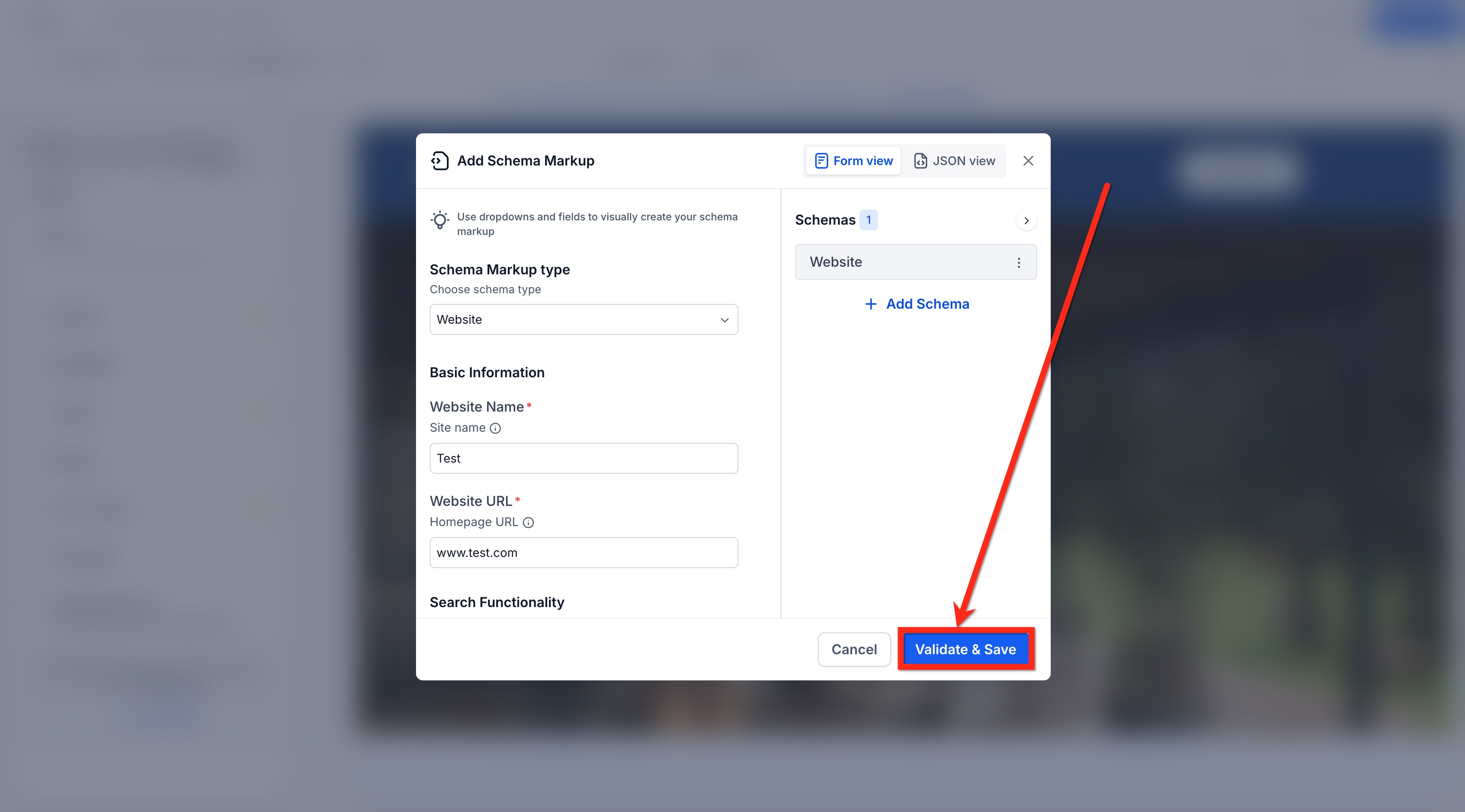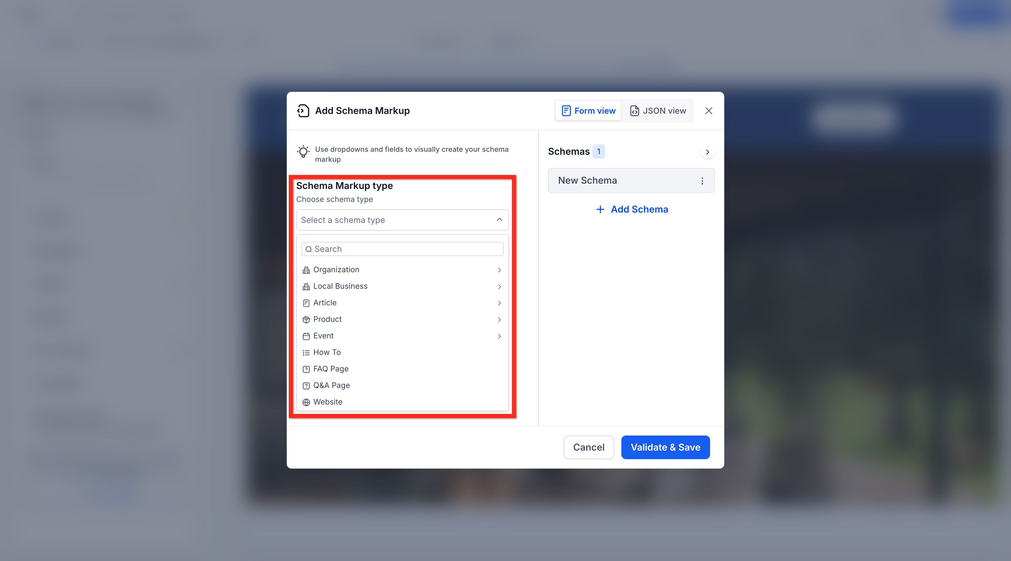 - Click on Schema Markup.