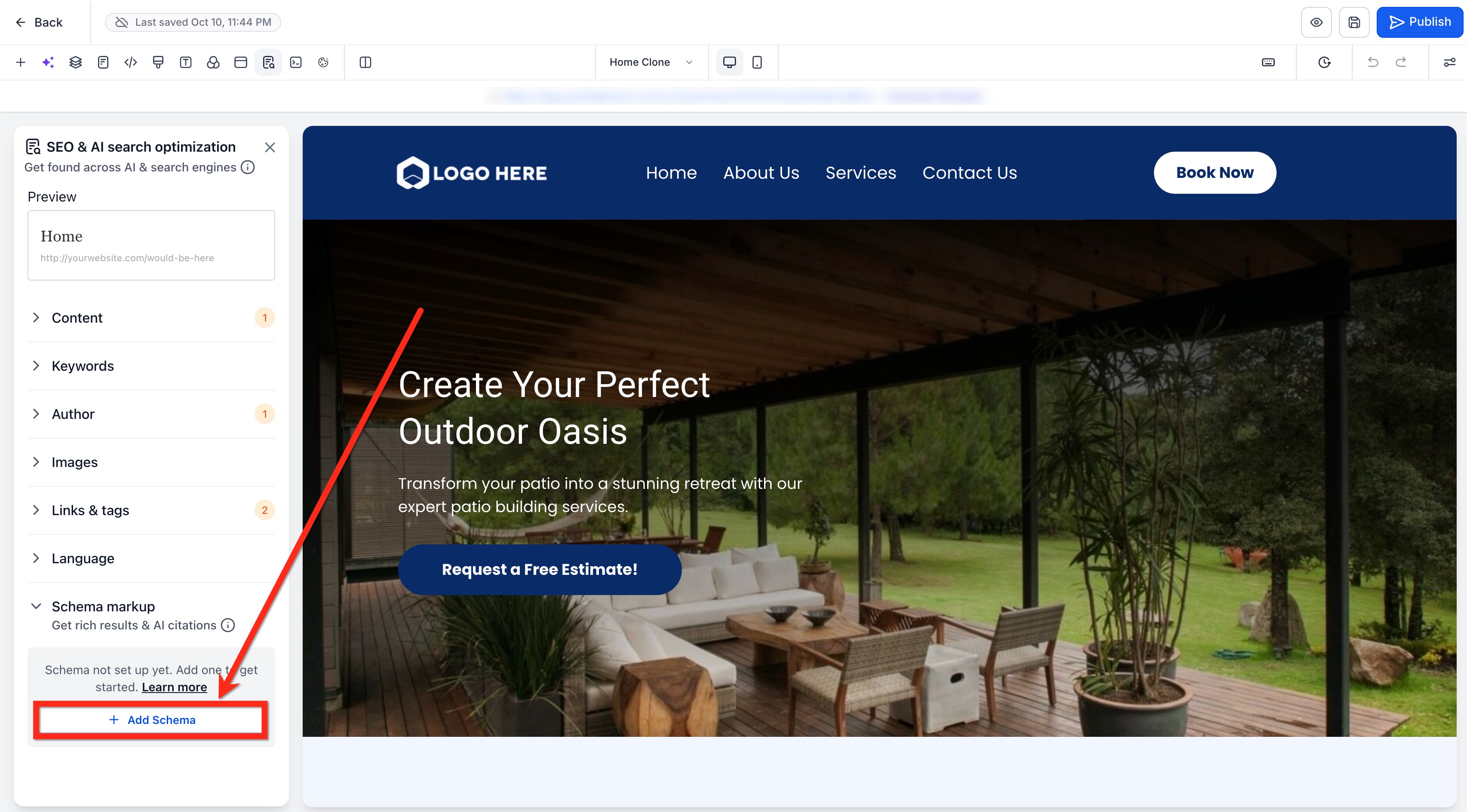 Correct setup starts by opening the exact Website page or Funnel step you want to optimize and then adding schema that matches the content visitors can see. Because schema is page-specific, you’ll repeat these steps for each page or step where you want structured data.